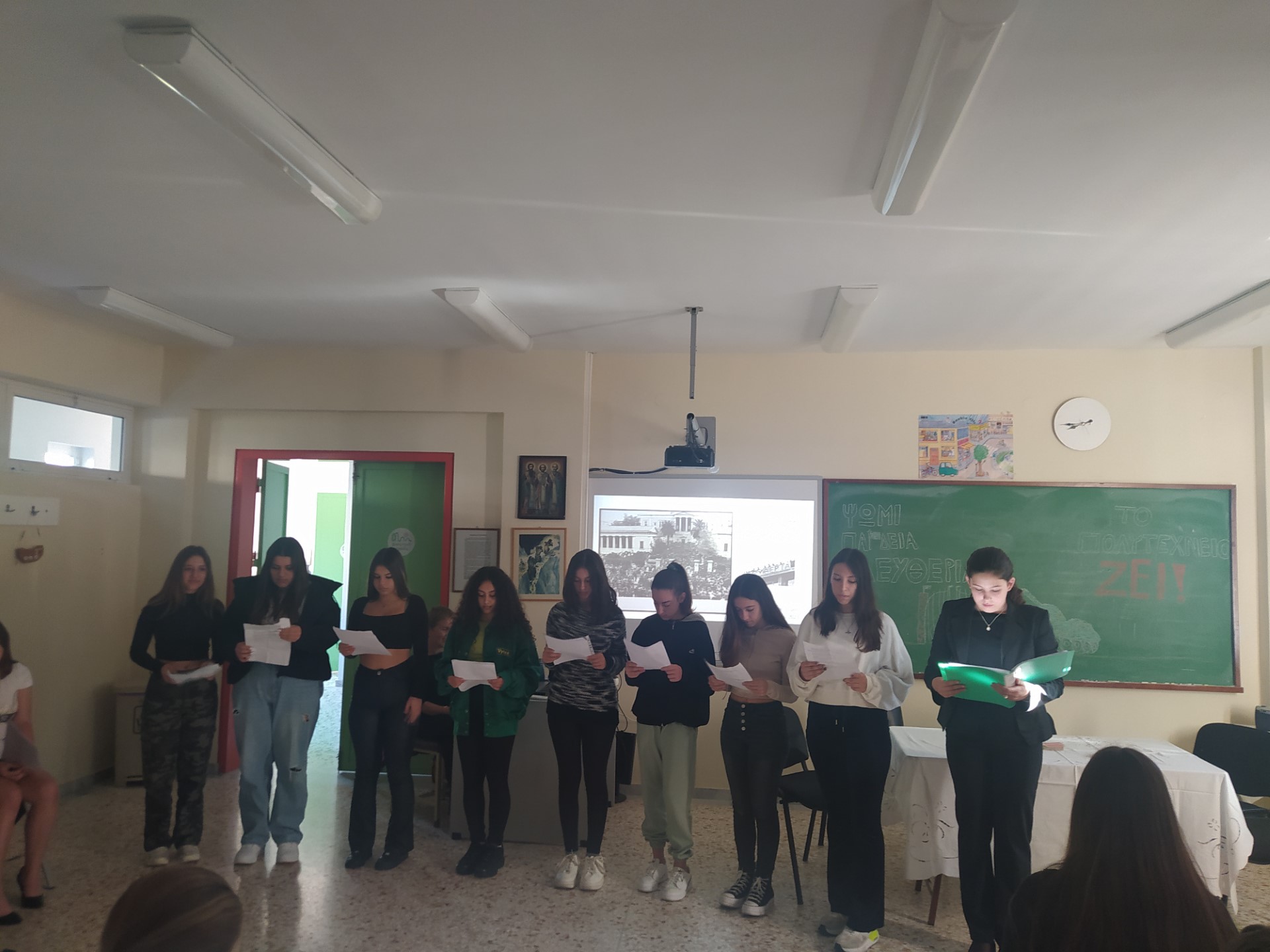 Πραγματικά, αυτή η γιορτή μνήμης των γεγονότων του Πολυτεχνείου συνδέεται στενά με τους νέ-ους, κερδίζει την προσοχή τους, γεννά σκέψεις και συναισθήματα και τους διδάσκει ότι η ελευθερία δεν είναι δεδομένη αλλά χρειάζεται α-γώνα και θυσίες για την ύπαρξη και την κατοχύρωσή της.